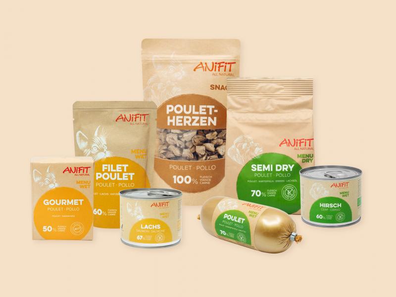 ANiFiT steht für natürliche Tiernahrung in hoher Qualität, dies kommt nun auch visuell zur Geltung. Die Rezepturund somit der Inhalt unserer qualitativ hochwertigen Produkte bleibt unverändert. Die offene und ehrliche 100%-Deklaration aller Inhaltsstoffe finden Sie, wie gewohnt, auf der Rückseite des Produktes und auf der Produktseite im Online Shop. Das neue Verpackungsdesign ist vereinfacht und strukturierter und hilft Ihnen, alle Informationen schnell zu erfassen. Im Zentrum stehen die Farben «grün» und «gelb», die für das jeweilige Sortiment Hund oder Katze stehen. Produkte, die für Hunde und Katzen geeignet sind,erscheinen neu in «braun», so wird klar getrennt und gut sichtbar, für welche Tierart, welches Futter geeignet ist.