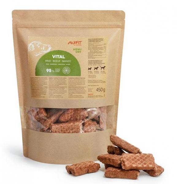 Dog Vital Rind enthält bereits die Inhaltsstoffe für die Rohfütterung. Die Zutaten werden gefriergetrocknet, damit sie bestmöglich erhalten bleiben. Somit ist dieses Produkt die perfekte Lösung für unterwegs.