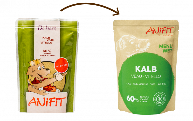 ANiFiT è sinonimo di alimenti naturali per animali domestici di alta qualità, e questo si riflette anche a livello visivo. Le ricette e quindi il contenuto dei nostri prodotti di alta qualità rimangono invariati. La dichiarazione aperta e onesta al 100% di tutti gli ingredienti si trova, come sempre, sul retro del prodotto e sulla pagina del prodotto nello Shop online. Il nuovo design della confezione è semplificato e più strutturato, per aiutare a cogliere rapidamente tutte le informazioni. Al centro si trovano i colori verde e giallo, che rappresentano i rispettivi assortimenti peri cani o gatti. I prodotti adatti a cani e gatti appaiono ora in marrone, in modo che sia chiaramente facile vedere per quale tipo di animale è adatto il cibo.