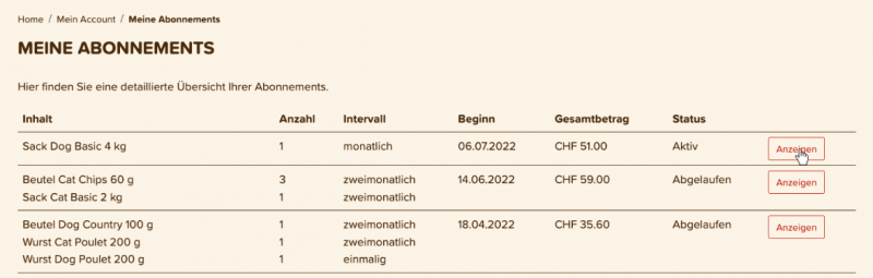 Wäre es nicht angenehm, wenn du die Nahrung für deinen Liebling regelmässig in einem von dir gewählten Rhythmus (monatlich, zweimonatlich usw.) direkt nach Hause geliefert bekommst?